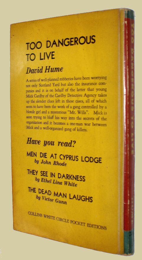 HUME, David. Too Dangerous to Live. A White Circle Pocket Edition.