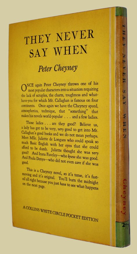 CHEYNEY, Peter. They Never Say When. A White Circle Pocket Edition.